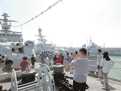 青岛依海而生、向海而兴,海军与青岛同频共振,战舰与城市血脉相连。从新中国成立后第一次海上阅兵,到庆祝人民海军成立70周年多国海军活动,再到中俄联合军事演习……在海军博物馆,探寻这些“青岛元素”的同时可以感受到红色血脉在青岛这座城市的传承赓续。参观中,不少市民表示,看到青岛能举办这么多海军活动,作为青岛人感到很自豪。