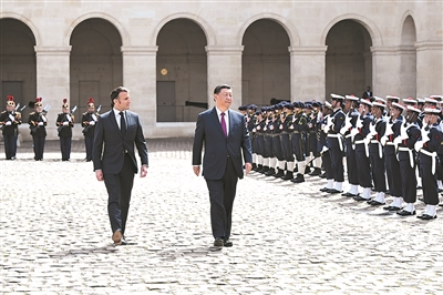 新华社巴黎5月6日电(记者杨依军 陈斌杰)当地时间5月6日下午,正在法国进行国事访问的国家主席习近平在巴黎出席法国总统马克龙举行的隆重盛大欢迎仪式。
