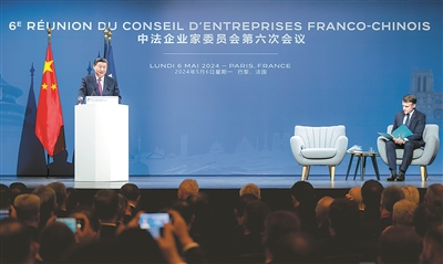 面向未来,我们愿和法方共同推动中欧互利合作。中欧是推动多极化的两大力量、支持全球化的两大市场、倡导多样性的两大文明。双方要坚持全面战略伙伴关系正确定位,不断增强政治互信,共同反对经贸问题政治化、意识形态化、泛安全化。期待欧方同中方相向而行,以对话增进理解,以合作化解分歧,以互信消除风险,将中欧打造成为彼此经贸合作的关键伙伴、科技合作的优先伙伴、产业链供应链合作的可信伙伴。中方将自主扩大电信、医疗等服务业对外开放,进一步开放市场,为包括法国和欧洲企业在内的各国企业创造更多市场机遇。