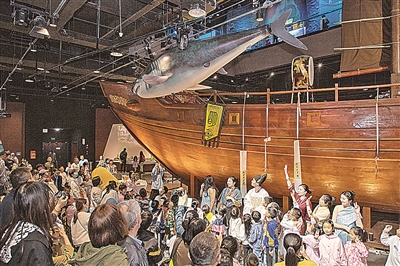 为丰富观众科普体验形式,青岛科技馆也在“五一”假期期间限时上演了备受好评的沉浸互动科普剧《郑和“夺”宝记》。作为全国首个原创科普剧,《郑和“夺”宝记》通过科学实验的跌宕剧情,带领“大小朋友”以沉浸式体验回到600余年前,重温郑和七下西洋的故事。剧末,神秘彩蛋“海中巨兽鲨鱼飞行巡游”更是引起现场阵阵欢呼,将气氛推向高点。