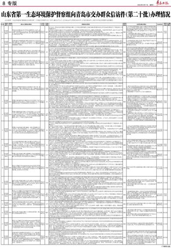 山东省第一生态环境保护督察组向青岛市交办群众信访件(第二十批)办理情况