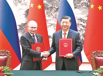习近平指出,普京总统这次对中国进行国事访问,是他开启新一届总统任期后的首次访问,充分体现了普京总统本人和俄方对发展中俄关系的高度重视。我对普京总统到访表示热烈欢迎。刚才,我同普京总统举行了坦诚友好、内容丰富的会谈,全面总结了建交75年来两国关系发展的成功经验,就双边关系以及共同关心的重大国际和地区问题深入交换意见,对下阶段两国关系发展和各领域合作作出规划和部署。我们还共同签署并发表《中华人民共和国和俄罗斯联邦在两国建交75周年之际关于深化新时代全面战略协作伙伴关系的联合声明》,见证了多项两国政府间和部门间重要合作文件签署,为中俄关系健康发展注入了新的强劲动力。