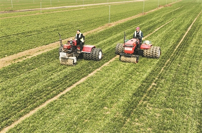 在青岛西海岸新区大场镇绿色增粮先行示范区一侧,崭新的液压翻转犁、重型智能拖拉机特别显眼。“这台拖拉机可以实现全自动无人驾驶,只要机手在地块上打好点位,输入数据,它就自动开始工作。”说起新购置的CVT重型智能拖拉机,示范区建设主体负责人姜永战满脸自豪。今年春耕前,姜永战不仅添置了性能好、作业效率高的大马力拖拉机,还购买了播种精度高的气吸式精量播种机。据介绍,气吸式精量播种机能精准到每个种窝只播一粒玉米种子,还可以根据需要开展合理密植,增加玉米播种株数,作业效率和质量明显提高。