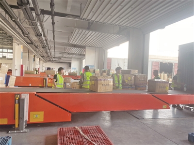 人工分拣动作慢、效率低,还容易出错,但有了这套快件自动分拣系统,机器每小时可以分拣600件快递。“而在过去,一人忙活一天才能分完四五百件。”园区国际快件部负责人曹泽军说,自动分拣不仅大幅提高效率,还能增强物流准确性。