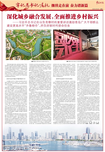 坚持城乡融合发展是解决城乡发展不平衡、农村发展不充分的重要途径。“习近平总书记强调要深化城乡融合发展,全面推进乡村振兴。崂山区半城半乡、亦城亦乡,将牢固树立‘以城带乡’‘乡融入城’的理念,加快推动城乡之间公共资源均衡配置和生产要素自由流动,推动城市基础设施和公共服务向农村延伸。”崂山区农业农村局党组书记、局长苏本顺表示,崂山区将加快推进新型城镇化和乡村全面振兴有机结合,以提升产业发展水平、乡村建设水平、乡村治理水平为重点,全力打造开放创新、宜业怡居的山海品质新城。“年内,我们将以北宅街道百果溪谷齐鲁样板省级乡村振兴示范区、沙子口街道流清湾市级乡村振兴示范片区、王哥庄街道仰口区级乡村振兴示范片区为带动,力争创建省、市级美丽乡村示范村6个以上,打造25条‘四好农村路’,让城乡融合发展更加相得益彰。”苏本顺说。