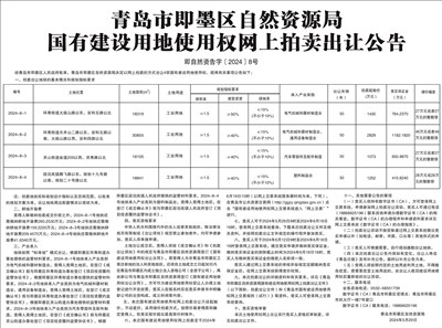 青岛市即墨区自然资源局国有建设用地使用权网上拍卖出让公告