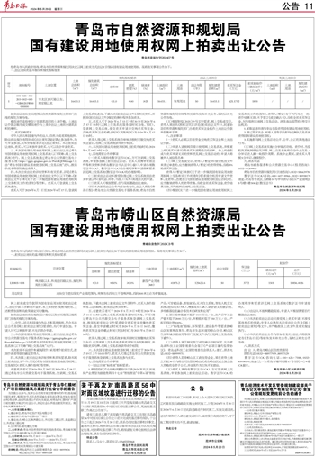 青岛日报 公告 11 2024-05-291 2024年05月29日 星期三