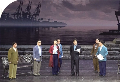无独有偶,《弄潮》结尾处一首《山海碧连天》也是二次修改的重要突破。这首作品由唱腔设计名家朱绍玉作曲,风格既有浓厚的京剧元素又有京歌的风韵。当下,年轻人钟爱《梨花颂》这样的京歌,《弄潮》大胆汲取时尚元素,打造了一首点题的核心唱段。在专家研讨会上,《山海碧连天》获得了普遍赞誉,饰演张连钢的京剧名家张建峰表示,每次唱起“我的城,我的港”时都心潮澎湃。张欣表示,《山海碧连天》这首歌后续将做成MV发行、推广,“用一首核心唱段表达《弄潮》对家与国、山与海、城与人关系的艺术呈现。”