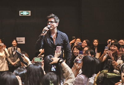 在5月29日《摇滚莫扎特》观众见面会现场,记者数了一下,只有四位男性观众散落在近三百位女粉丝中,非常有趣。近年来,剧院女观众比例已经突破70%,而音乐剧的女观众比例更加高企,见面会现场还有三位女观众直接以法语提问,对“法扎”的细节如数家珍。观众接受采访时表示,他们最关注的是自己买到的是A卡还是B卡。A卡代表主要演员,也就是参加见面会的三位主演:饰演莫扎特的米开朗琪罗·勒孔特——2009年初版莫扎特的饰演者,他用邪魅的眼线、充满锐气的妆容和充满张力的唱腔重塑了“莫扎特”,法语音乐剧的魅力通过米开朗琪罗的歌声传播到全世界,他现身中国舞台也唤起了粉丝的怀旧情结;饰演萨列里的洛朗·班音色和外形都非常出众,粉丝们根据他的中文名谐音称呼他“老航班”,也是一个非常有魅力的音乐剧演员,他在《悲惨世界》中饰演的沙威堪称经典角色,被赞“眉毛一挑都是戏”,洛朗·班曾和众多音乐剧大咖演员合作过;饰演康斯坦斯·韦伯的女主角诺埃米·加尔西亚原本饰演莫扎特的“姐姐”,如今变身莫扎特的“妻子”,角色的变化让她的演绎更加激烈,冲突感更强。此外,“法扎”中饰演莫扎特父亲的索拉尔,也是今年央视春晚与歌唱家廖昌永合唱《美人》(《巴黎圣母院》经典唱段)的宝藏演员。