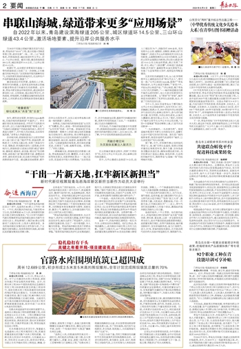 自2022年实施公园城市建设攻坚行动以来,青岛结合“12131”工程,重点实施3项绿道骨架工程,逐步完善“一线、一环、三山”绿道体系,即滨海绿道、城区绿道环和太平山、浮山、午山环山绿道。截至目前,建设滨海绿道205公里,城区绿道环14.5公里,三山环山绿道43.4公里。