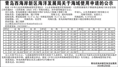 青岛西海岸海洋发展局关于海域使用申请的公示