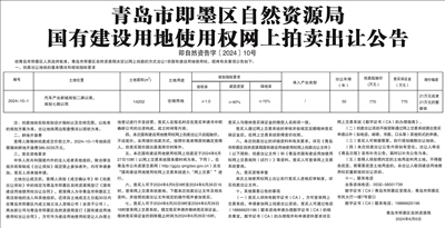 青岛市即墨区自然资源局国有建设用地使用权网上拍卖出让公告