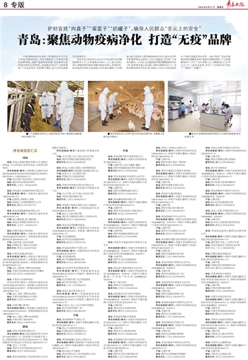 青岛市农业农村局从2018年开始全面启动动物疫病净化工作,以种畜禽场为核心,以人畜共患病、重大动物疫病和垂直传播性疫病为重点,探索研究、综合集成对养殖业危害较大的布鲁氏菌病、非洲猪瘟、禽白血病等主要动物疫病净化技术,面向全市所有规模养殖场全面推广应用,构建起“点片面”立体净化模式。6年来,先后建成国家级动物疫病净化场1家、国家级无疫小区5家、省级布病净化县3个、省级动物疫病净化场84家,涵盖6个区市47家养殖场11个病种,数量位居全省第一,极大促进了青岛市畜禽养殖环境整体改善、健康状况整体提高、产品质量整体跃升,守牢了全市动物卫生、动物源食品卫生和公共卫生三条安全底线,护好了人民群众的“肉盘子”“蛋篮子”“奶罐子”。