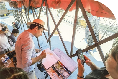 意大利艺术家马西米利亚诺·洛科首度来青就收获惊喜,“如同水彩的‘不可控’,水彩艺术季也给人惊喜。”尤其是跟多位艺术家一起合作为青岛写生,让他非常期待。他表示会用技巧和知识呈现更好的水彩画,画出青岛的美。