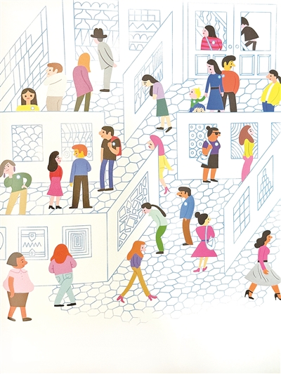 克莉丝汀希望读者在她的书中不断找到新鲜的东西和感受,她的确做到了。《每个人都重要》的译者邹雯燕些许遗憾地表示,她所翻译的书名并没有将英语的多重含义表达出来。以孩子的视角来看,这是一本讲数数的书,从零开始。“没有人。”翻过一页,我们会看到“一个小男孩数自己的心跳,他在想着,世界上有多少人和他一样,正望着同一片星空。”另一页上,“两个人在森林中谈话,一个人正在说的话,另一个人将铭记终生。”再翻过一页,“三个人在领奖台上。有两个人很开心,因为他们进入了前三名。”第四页,“四个人的一支乐队。有一个人是双胞胎中的一个,有一个人为给女儿准备什么生日礼物而发愁,有一个人很快就要受伤。”……在不同的场景中,人物的数量不断增长,而画面的细节也不断累加。读者要去观察,去做出自己的理解和判断,他们也可以选择画面中的任何一个人物,跟随他,看见他们在不同的页面场景中出现,随着人物不断增多,群体之间人与人的关系也不断变化、显现,直至最后——