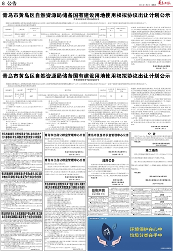| 青岛市黄岛区自然资源局储备国有建设用地使用权拟协议出让计划公示 | |
