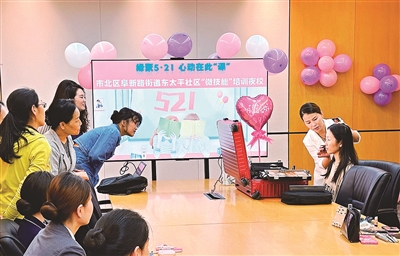 东太平社区“微技能”培训夜校由社区提供培训场所,人社部门提供培训师资,定期征集社区居民培训需求,免费为社区居民提供培训课程。社区夜校的成立标志着市北区“市、区、街道、社区”四级联动夜校服务体系的初步形成,为社区居民提供了一个在家门口免费学习新技能、提升自我价值的新平台。