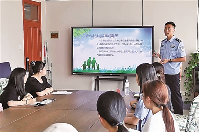 ■近日,青岛市强制隔离戒毒所开展禁毒宣传进校园活动,活动以“共创绿色无毒社会,同享健康多彩人生”为主题。戒毒所警察洪喆受邀到青岛大学进行普法宣讲。