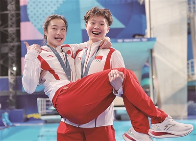 本报巴黎7月27日讯 法国当地时间7月27日,在巴黎奥林匹克水上运动中心,记者现场见证了陈艺文、昌雅妮3米板摘金。这是中国体育代表团本届奥运会的第二金、中国跳水队“开门红”摘得的本届奥运会首金。值得一提的是,这是陈艺文和昌雅妮的第一次奥运征程,两人凭借精彩表现以337.68的总分顺利夺冠,中国跳水队也完成了在奥运会女子双人三米板项目上连续六届夺冠的壮举,无愧“跳水梦之队”。
