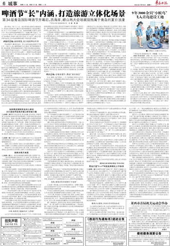 与此同时,青岛红树林第六届海洋光影狂欢节,带来裸眼3D·大型实景魔法演艺秀、夜游剧场、网红光影小镇、无人机天幕秀、光影音乐节等多种文旅体验;2024海小青消夏啤酒季,除文艺表演、美食市集、啤酒畅饮、焰火秀外,还举办篝火晚会、草坪音乐会、海青好声音、时光客栈民谣、农品展销等活动……