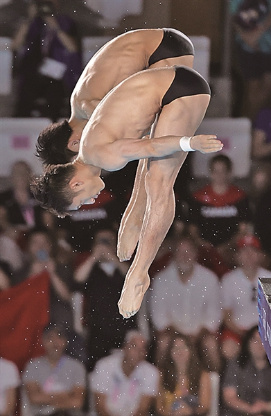 比赛中,练俊杰与杨昊没有给对手留下机会。根据抽签,两人在第7号顺位出战,首次登场就完成了精彩亮相,以101B的动作拿下56.40分全场最高。接下来,他们一步一个脚印稳步发挥,逐步拉开与对手的差距,不折不扣地按照节奏完成技术动作,难度系数3.6的207B发挥出色,拿下91.80分,早早锁定优势,最后一跳又斩获103.23的全场最高分,以大幅度优势领先英国和加拿大组合稳居冠军。英国组合获得亚军,加拿大组合摘铜。