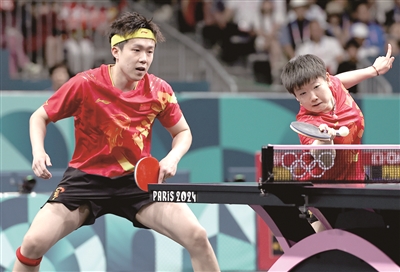 7月30日,巴黎奥运会乒乓球混双项目决赛举行,中国组合王楚钦/孙颖莎战胜朝鲜组合李正植/金琴英,以4∶2的大比分夺得本届奥运会乒乓球混双冠军。