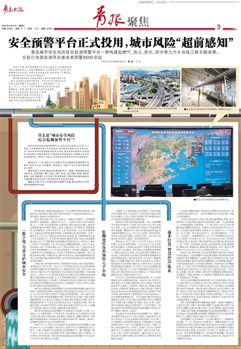~~~青岛城市安全风险综合监测预警平台一期构建起燃气、热力、供水、排水等九大生命线工程专题场景,目前已有效监测并处置各类预警6000余起