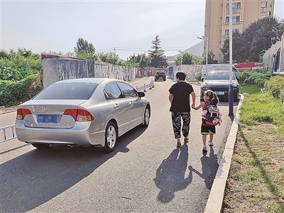 这条道路为何没有修建人行道?小区开发商称,这条道路是开发商为方便业主进出而建设的临时路,开发企业没有权力建设人行道,建议向有关部门反映人车混行问题。