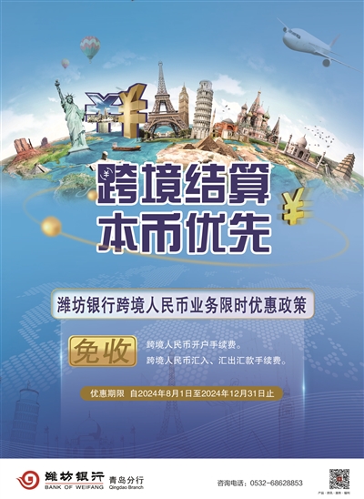为进一步降低企业运营成本,提升跨境贸易投资便利化水平,潍坊银行青岛分行自8月1日至12月31日,特别推出跨境人民币业务限时优惠政策,免收跨境人民币开户手续费及跨境人民币汇入、汇出汇款手续费。这一举措无疑为青岛地区的涉外企业送上了“及时雨”,让企业能够更加专注于业务发展,无惧汇率波动,轻装“出海”。
