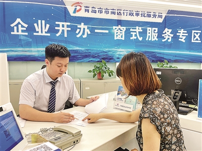 今年7月,恒丰银行青岛东海路支行加入市南区“政务服务+”联盟。区行政审批局为该新设政务服务便民服务点配备了两名“暖南”审批服务专员,经过业务指导和培训,可为企业提供办理营业执照等40余项审批事项服务。