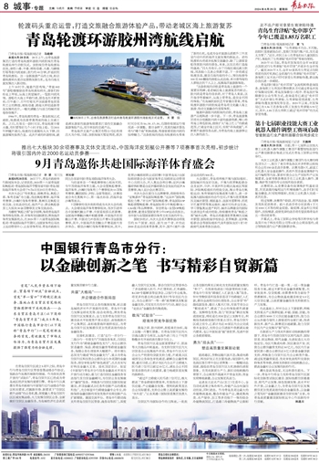 本报8月28日讯 28日上午,由青岛旅游集团打造的青岛轮渡环游胶州湾航线在青岛轮渡站举行启航仪式。该航线自青岛轮渡站出发,途经小港、中港、邮轮母港、大港、马蹄礁灯塔等胶州湾地标,航行约40分钟,折返回到青岛轮渡站。这一全新旅游产品的上线,标志着轮渡码头重启运营焕发新生机,也为后海文旅发展注入新动能。