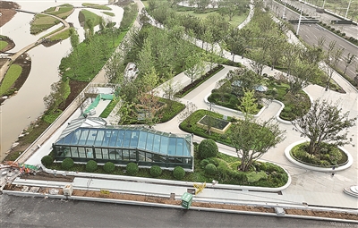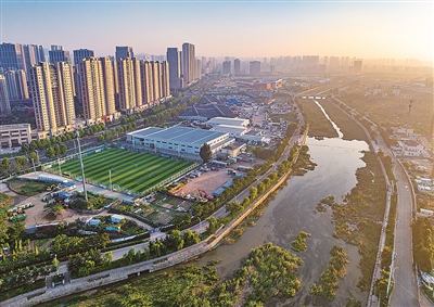 河水潺潺、草木葱茏,焕新中的张村河,仿似一条蜿蜒流淌的碧绿绸带,仅是露出一角,却已展现千种风情——清晨时分,阳光与微风交织在一处,如亲密舞伴,在河面上泛起阵阵涟漪,只见她轻轻环绕,便将城市的繁华与自然的静谧巧妙融合。