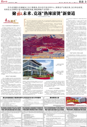 作为全国最大的辣椒加工出口集散地,胶州在打造交易中心、探索全产业链出海、加力种业研发、培育自主品牌等方面不断取得新突破,赋能辣椒产业发展——~~~