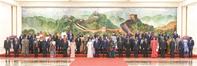 9月的北京,秋高气爽。雄伟的人民大会堂内,中国国旗和中非合作论坛成员国国旗以及非洲联盟旗帜交相辉映。