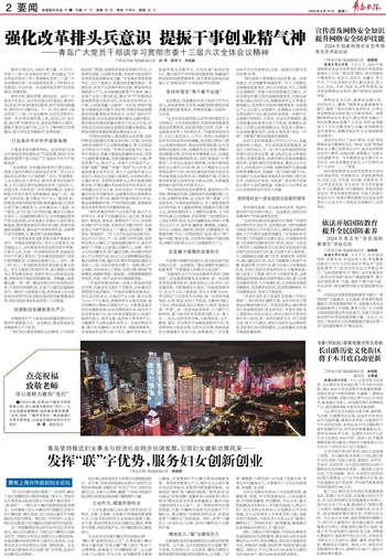 妇女事业始终是党和人民事业的重要组成部分。近年来,青岛坚持推进妇女事业与经济社会同步协调发展,发挥妇女“半边天”作用,支持妇女建功立业、实现人生梦想,激励广大妇女为推进中国式现代化青岛实践贡献巾帼智慧和力量。