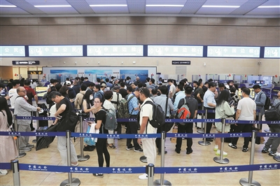 本报9月11日讯 今年以来,受多重利好政策叠加影响,青岛胶东国际机场出入境旅客流量增长迅猛。记者从山东边检总站青岛机场边检站了解到,截至11日13时,青岛机场口岸出入境人员已突破200万人次,客流量及航班量较去年同期分别增长125.52%和76.55%,创青岛胶东国际机场转场以来历史新高。