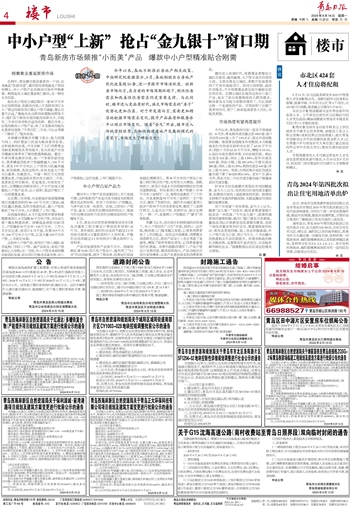 对于市场接下来的表现,业内人士认为,随着“金九银十”的到来,购房者观望情绪可能会进一步改善。“今年金九银十,政策环境更加明确和积极,购买门槛已降至历史新低,叠加各项以旧换新促进改善需求释放、国家下场收存量房等利好信号,观望情绪有所松动,看房会更加积极,加上房企积极备战,中小户型产品力凸显,预计今年九、十月份楼市的热度较去年会明显提升。但看房热能否转化为购房热,还要看房价是否到位、旧房能否顺利转化出去。”锐理数据山东区域总经理刘元婧说。