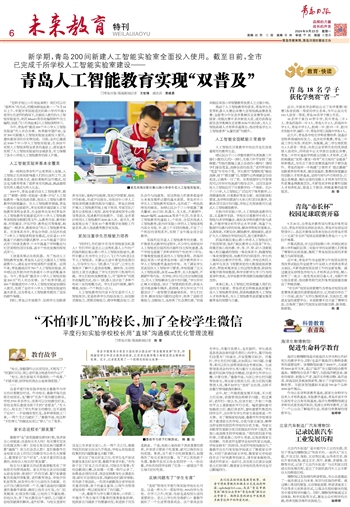 同时,青岛以有效提升、呈现学生创新素养为目标,重构评估框架,优化评价要素,细化评价标准,形成评估报告,为推动中小学人工智能课程建设提供指导与建议。青岛还持续开展人工智能教师线上线下培训、专家团队打造专业课程送入校园、高校专家进校园专业指导等活动,促进教师技能提升。目前,全市累计培训人工智能教师3000余人次。前不久,青岛刚刚公布了首批10个教育数字化领航工作室名单,深入推进教育数字化实践。