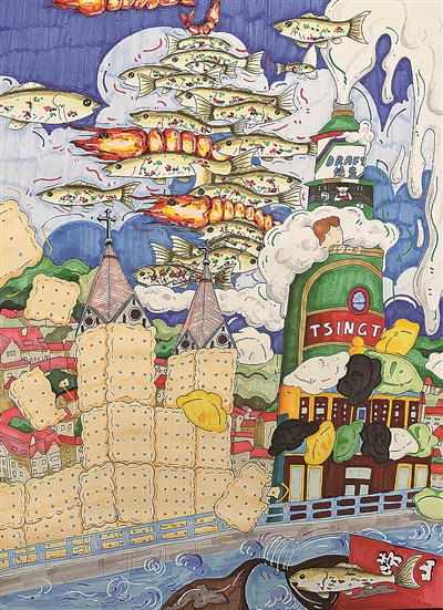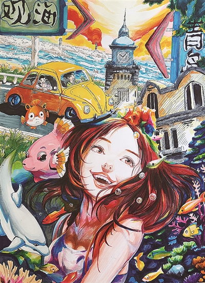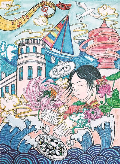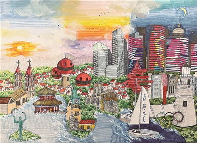 色彩明艳、活泼,充满张力的作品展示了小作者充沛的想象力和绘画功底,孩子的笔触让青岛的美跃然纸上。