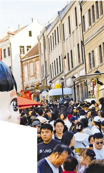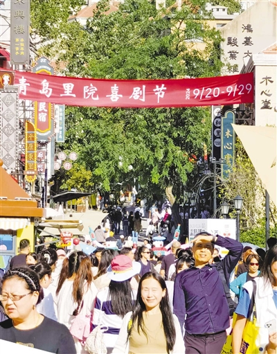 国庆假期,上街里“喜剧三角”悄然成形:悦喜客来的相声园子“青岛曲艺社”、天泰22世纪音乐厅的开心麻花沉浸式带餐喜剧《偷心晚宴》、中山路中国电影院的驻场脱口秀“蛤蜊喜剧”,三家喜剧厂牌吸引着年轻观众纷至沓来。从传统相声到时尚单口喜剧,青岛里院喜剧节提倡的多业态合作在上街里街区初见端倪。汹涌的人流客群荡涤着每个院落,摄影记者感慨:进出一趟上街里,脚踩肿了,脸笑麻了。