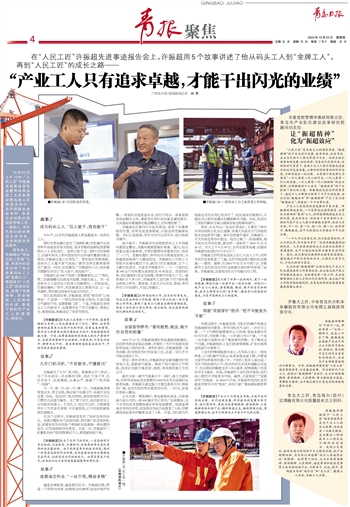 在“人民工匠”许振超先进事迹报告会上,许振超用5个故事讲述了他从码头工人到“金牌工人”,再到“人民工匠”的成长之路——~~~