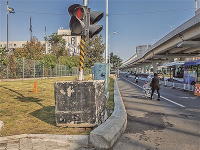 据张先生介绍,在重庆高架路建设前,重庆南路两侧原有约3米宽的人行道,建设重庆高架路时,为了拓宽道路和实施交通调流,拆除了大部分人行道,但高架路从去年年底通车后,这里一直没有配建新的人行道。更让他不解的是,这些路段虽然没有人行道,路边却给绿化带留出了不少空间。例如,重庆南路和清江路路口西北侧有长约100米、宽约8米的绿化带,但路人只能在慢车道上与来来往往的自行车、摩托车并行。