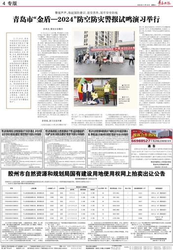 11月14日,青岛市国防动员办公室组织开展青岛市第26个“警报试鸣日”演习活动,全面检验和提升城市的防空防灾预警能力。全市部分行政机关、社区、学校、企业、媒体等积极配合,参演人数达六千余人,达到了预期目的。