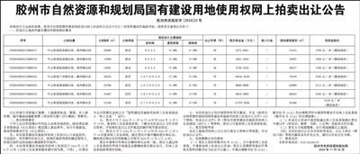 胶州市自然资源和规划局国有建设用地使用权网上拍卖出让公告