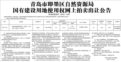 青岛市即墨区自然资源局国有建设用地使用权网上拍卖出让公告