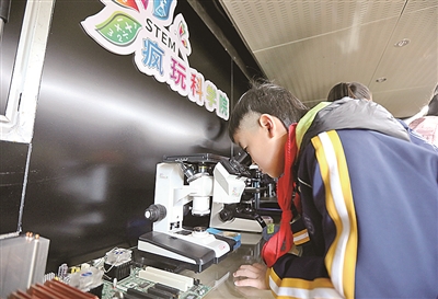 青岛辽源路小学本届PBL周的学习主题是“向世界传播精彩中国之——漫步太空”。学生用项目化的学习方式亲手打造学校的“太空体验馆”,把对太空探索的学习成果呈现出来,并设计各种有趣的体验活动。学校在全市首次将“疯玩科学院STEM移动实验室”引进校园,通过提供丰富多样的STEM教育资源和实践机会,激发青少年对科学技术的兴趣与热爱,培养他们的科学素养、创新思维和解决问题的能力,为未来社会培养更多具备跨学科知识与技能的复合型人才。 韩 星