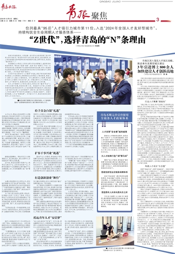 近日,《中国城市人才吸引力排名:2024》公布了最具“95后”人才吸引力城市50强,青岛排名第11位。而在前不久中国人力资源开发研究会发布的《2024年人才友好型城市研究报告》中,青岛成功入选“2024年全国人才友好型城市”,同时还入选“2024年全国最具人才吸引力城市”和“2024年全国最佳人才发展生态城市”。对城市的好感度,人才会“用脚投票”。今年前10个月,青岛引进首次来青青年人才14.55万余人。