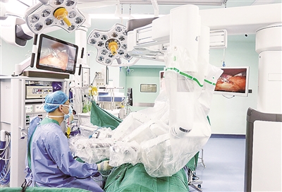 泌尿系统涉及肾脏、输尿管、膀胱等重要器官,是人体代谢的“黄金通道”。“泌尿三癌”即膀胱癌、肾癌和前列腺癌的发病率近年来呈上升趋势,严重威胁群众健康。手术机器人以其“更微创、更精准、更高效”的显著优势,助力泌尿外科医生不断实现技术突破。近日,记者在青岛市市立医院东院泌尿外科沉浸式体验机器人手术。该院在2019年引进全球最先进的第四代手术机器人,泌尿外科至今已开展机器人手术近1000例,引领泌尿外科手术进入“超微创”时代。