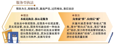 在执法中体现服务,在服务中实现监管,是实现监管、执法、服务有机融合的一种执法理念和模式,推动行政执法由管理型向服务型转变,更加注重统筹市场活力与秩序、发展与安全