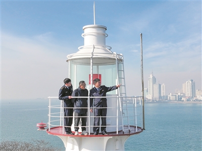 今年,小青岛灯塔迎来建立120周年。青岛航标处老、中、青三代守塔人专程相聚,登临塔顶,漫谈守望岁月,不胜感慨。